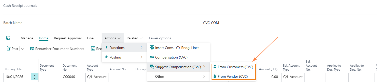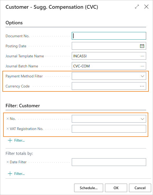- Document No.: the document number is used only if no temporary number series is defined in the batch setup.