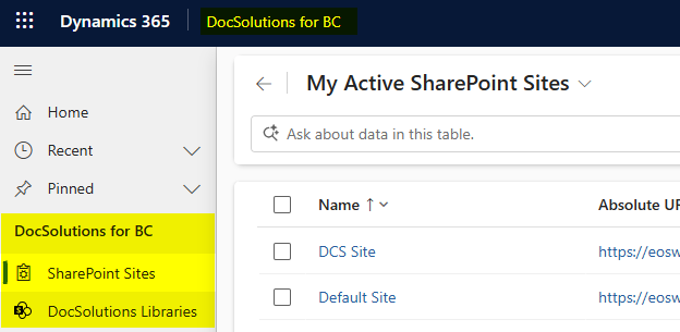 DocSolutions for BC - Setup