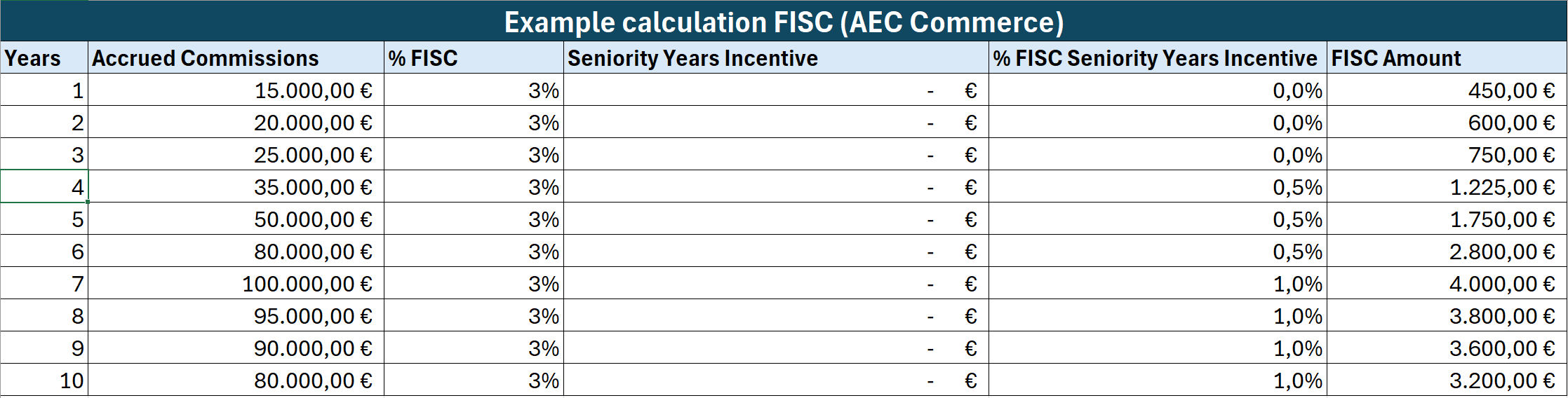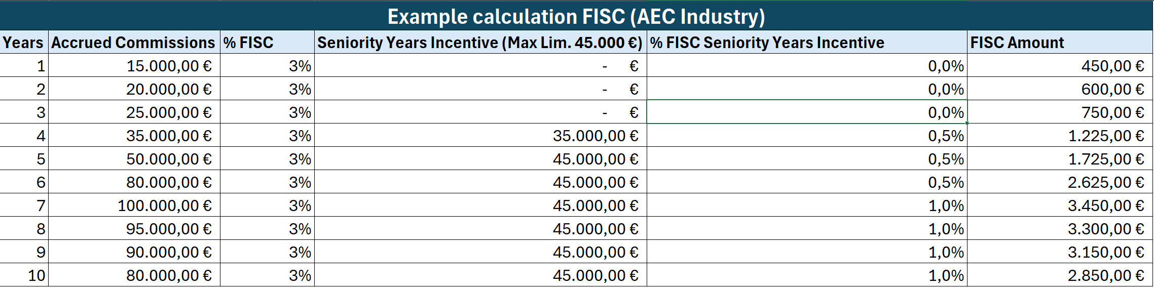 Example of FISC Calculation (AEC Commerce)