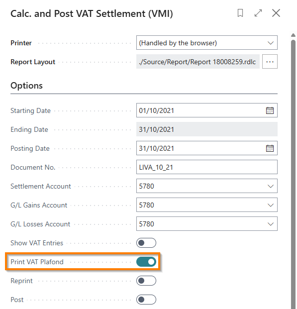 The fixed VAT Plafond can be printed using the specific report “VAT Plafond Periods (VMI)” or at the bottom of the VAT Settlement: