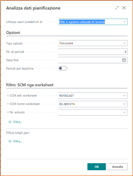 In the request page, select the “Forecast” type and indicate the number of periods to calculate. The subsequent periods will be calculated starting from the analysis end date defined in the forecast batch.