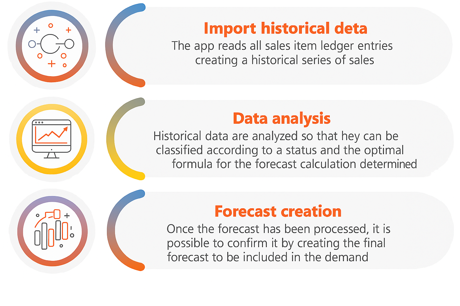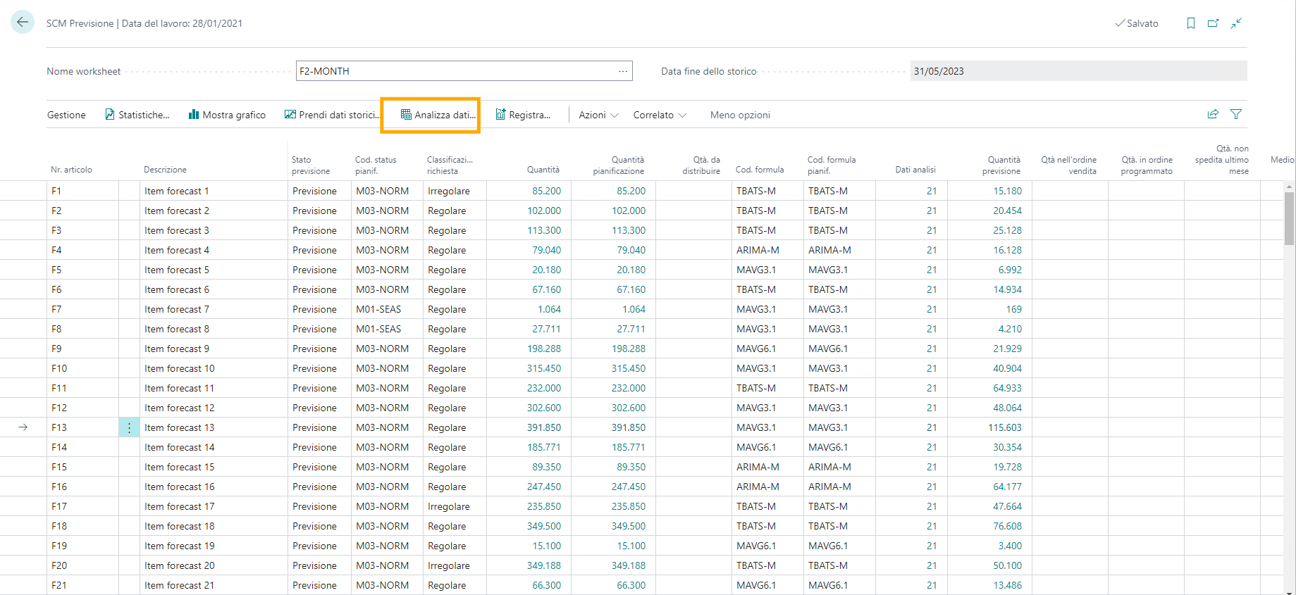 With the SCM app, it is possible to calculate and generate a demand forecast by analyzing historical data present in the system.