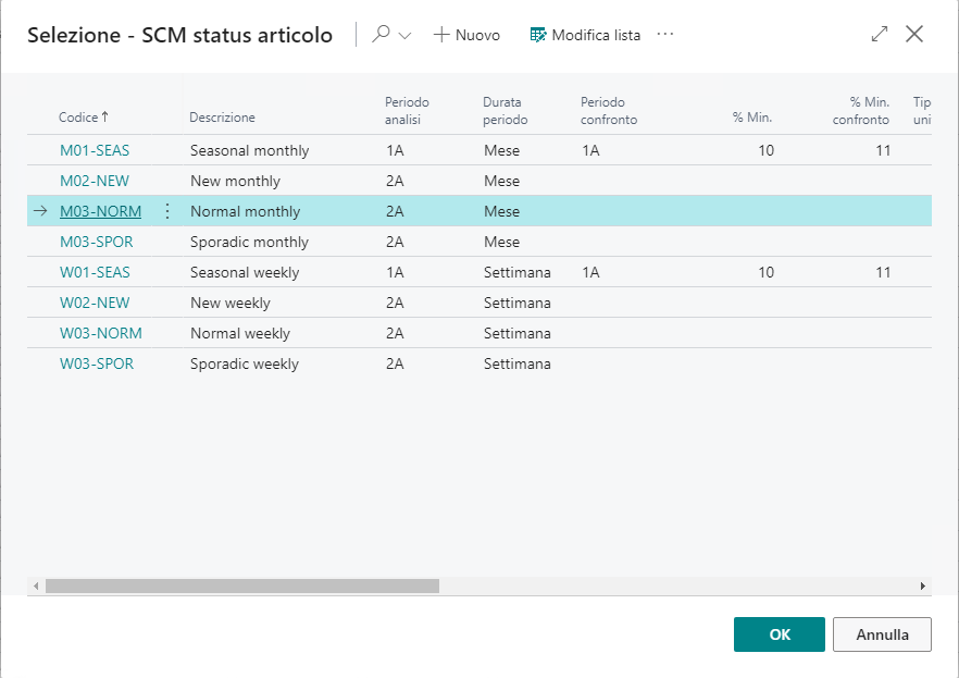 For each item status, a list of possible formulas can be assigned to be used during the analysis and forecast calculation phase.