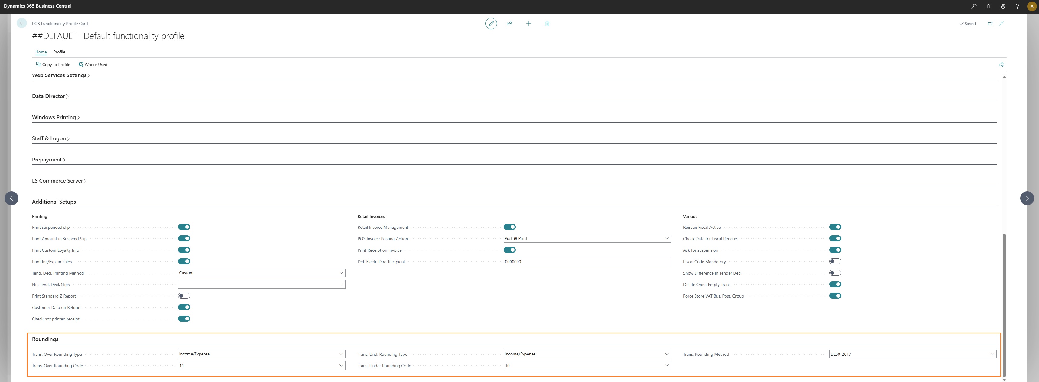 Within each POS functionality profile used by stores or POS terminals, you can configure the rounding management settings.