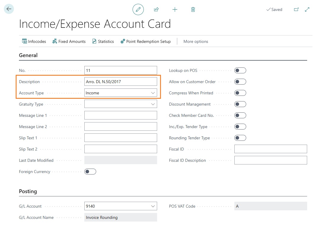 - Income/Expense: when rounding should be handled using an income/expense linked to the store master data.