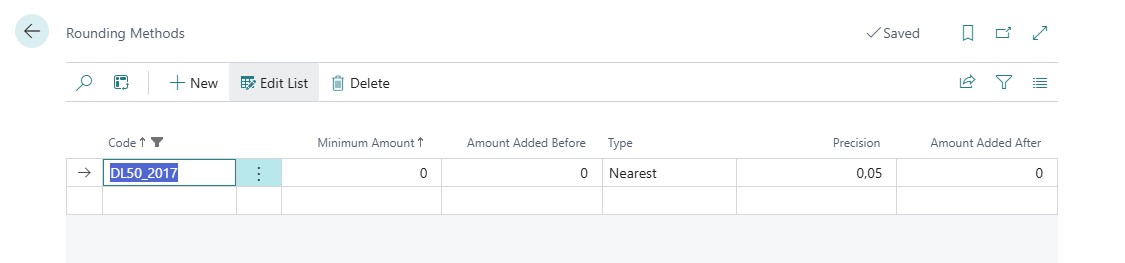 For the correct automatic calculation of the rounding, it is necessary to create a “rounding method”. The rounding precision must be set to 0.05, and the rounding type must be “Nearest”.