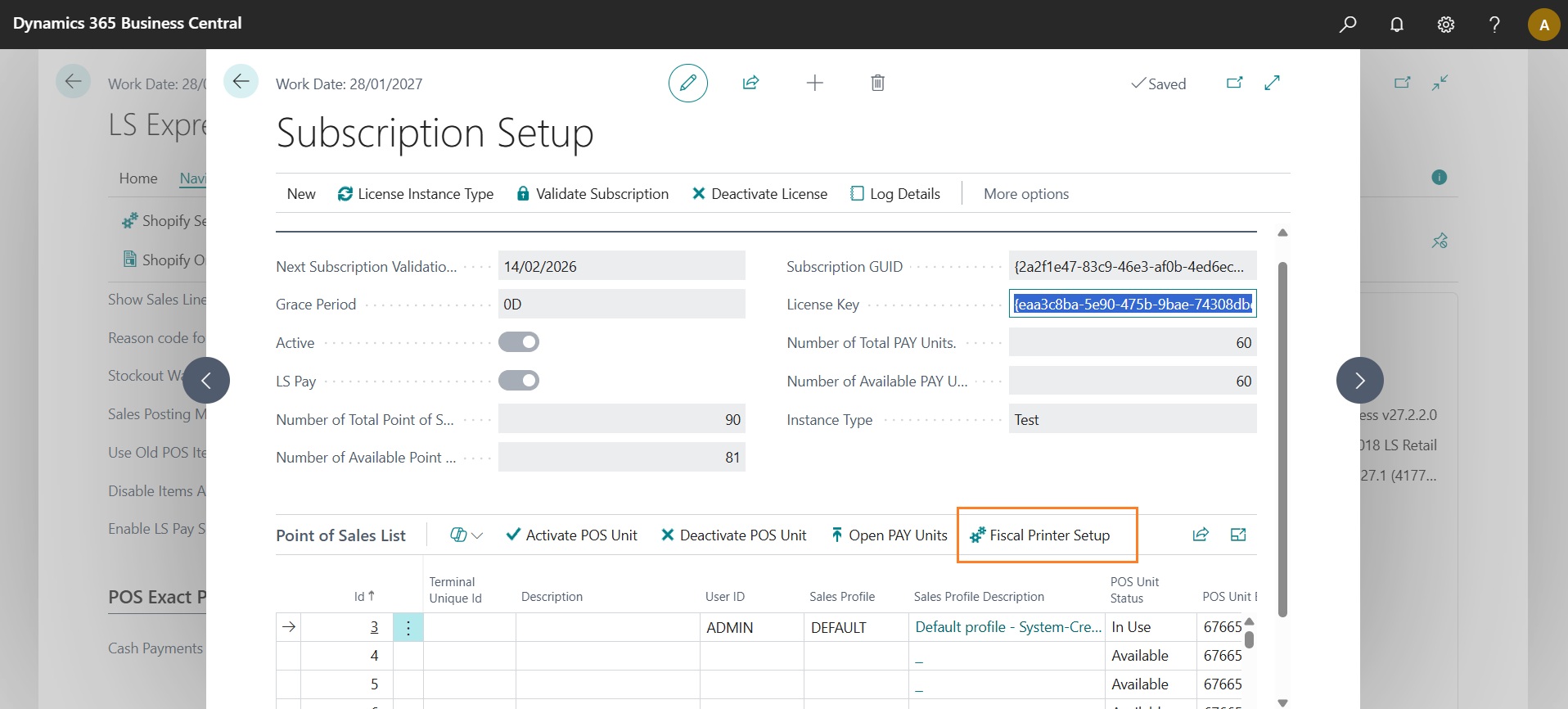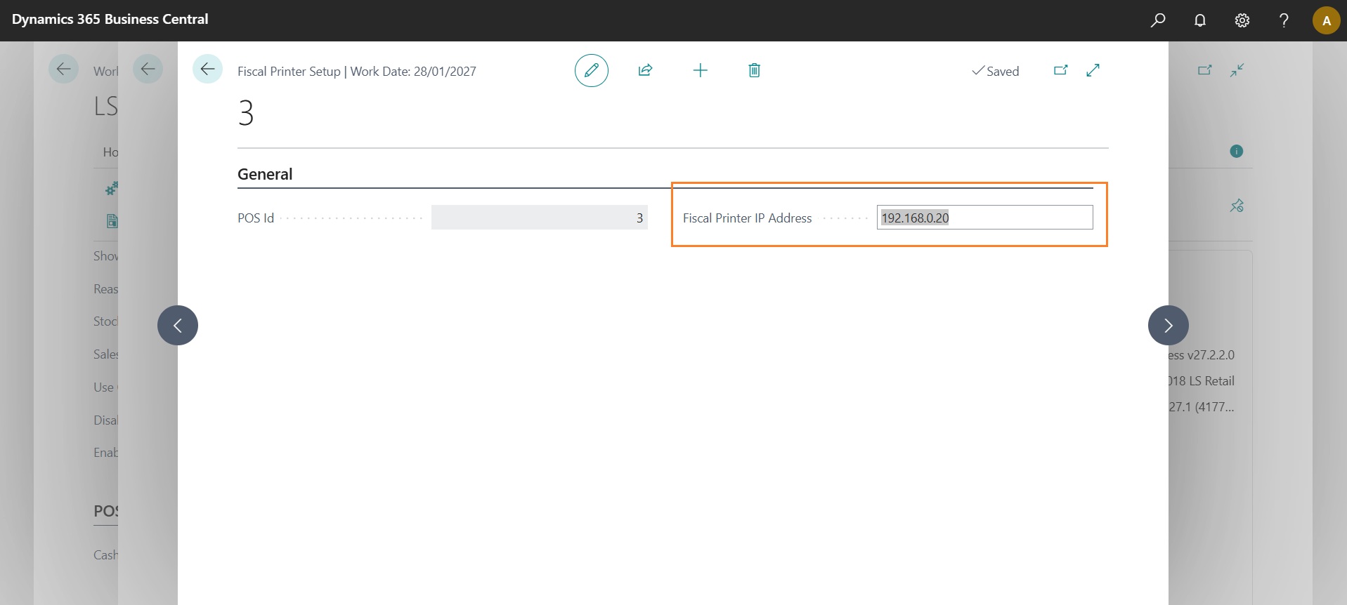 To enable proper communication between LS Express and the Epson fiscal printer, it is necessary to enter the IP address configured in the fiscal printer setup. The association between the IP address and the POS number (POS Id) is managed through the “Fiscal Printer Setup” function available on the LS Express subscription management page.