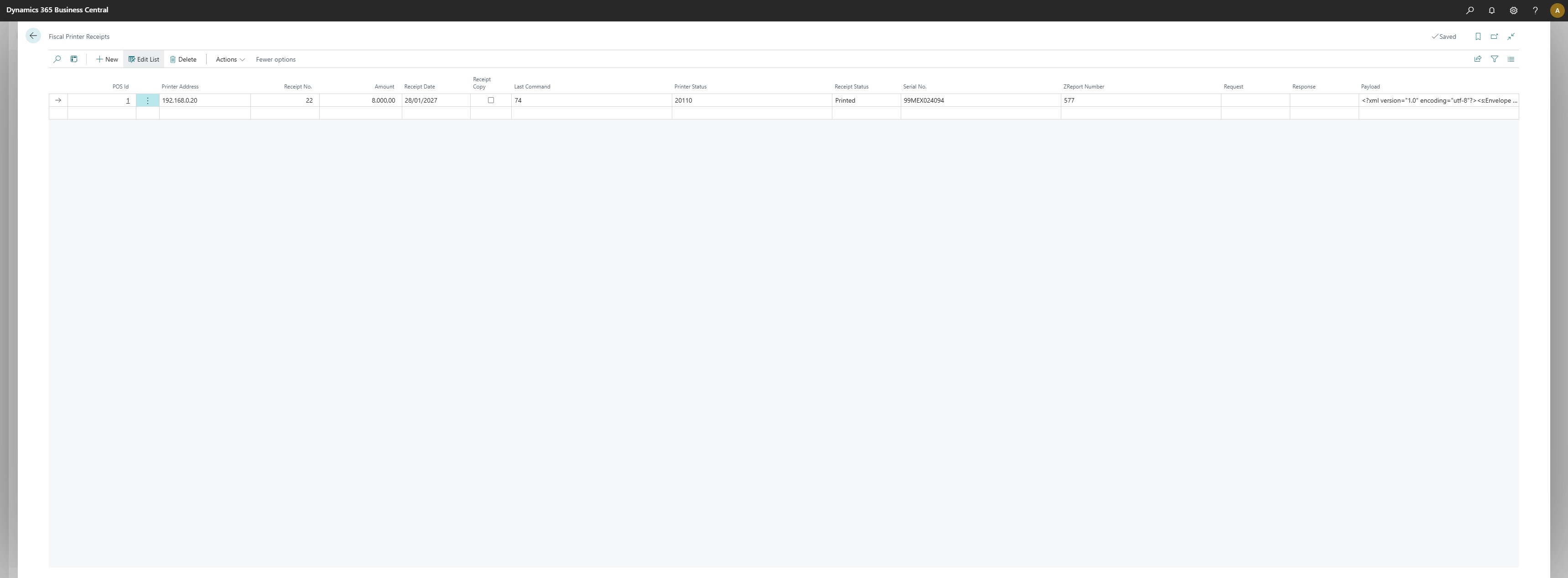 You can then display the payload on screen by running the “View Payload” function. Once the commercial document has been printed, the record will contain additional information such as:
