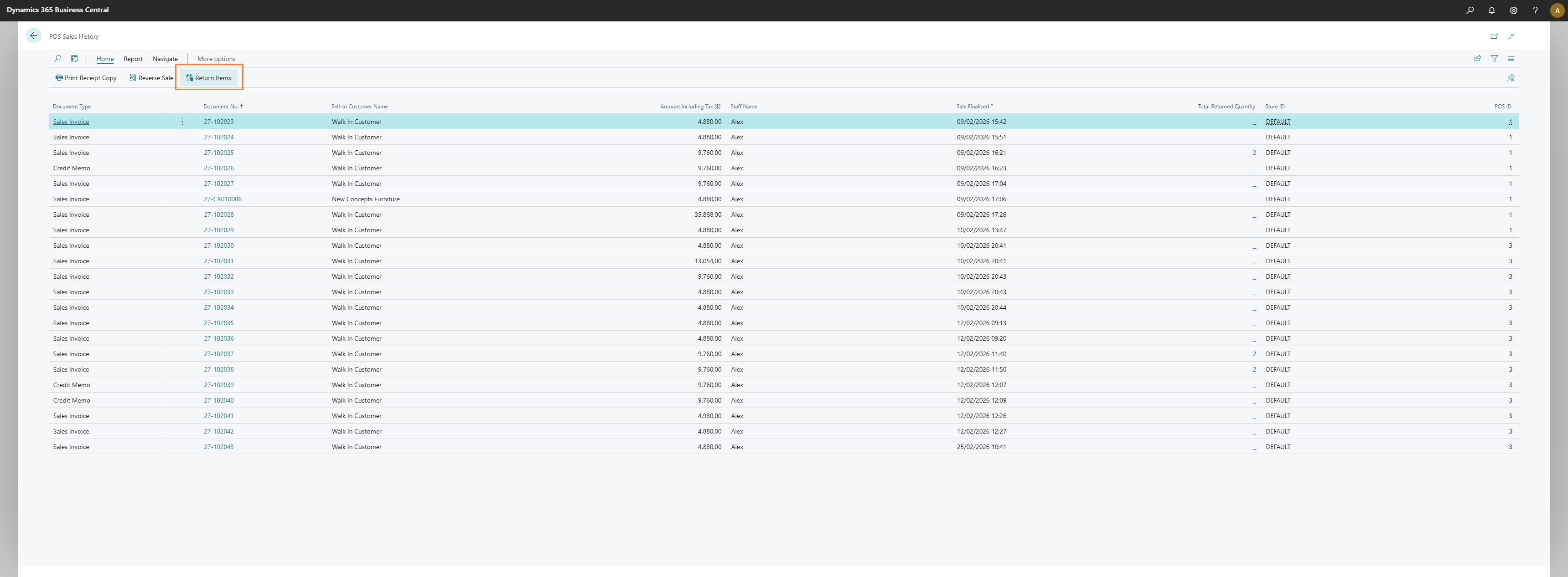 The app allows issuing cancellation commercial documents and return commercial documents through the fiscal printer. The procedure for handling both document types requires the use of the LS Express standard function “Return Items”, available on the “POS Sales History” page.