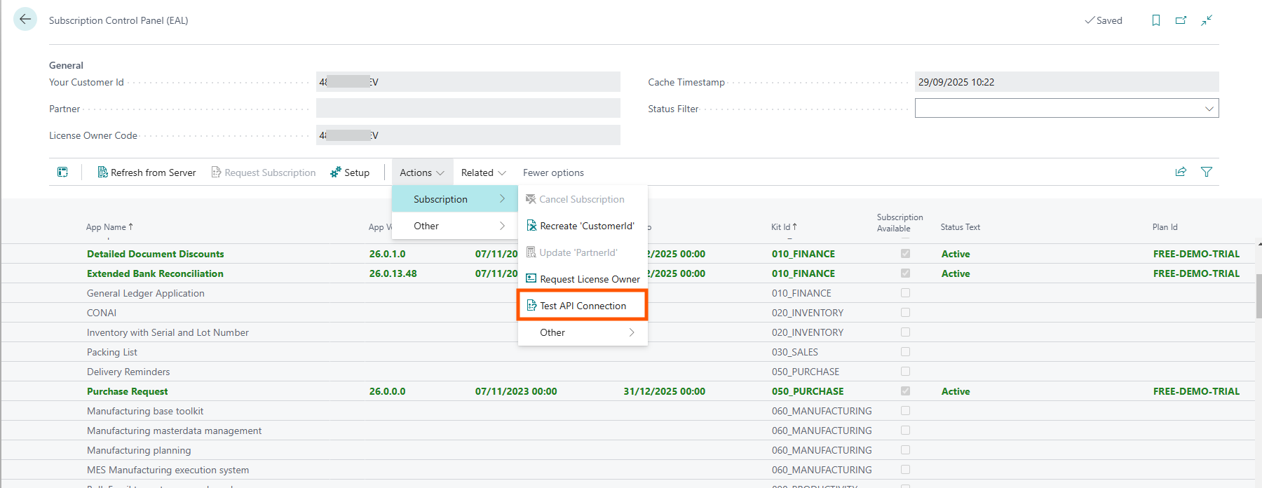 After installing the app search (ALT+Q) for ”Subscription control Panel” page and select ”Request Subscription”.