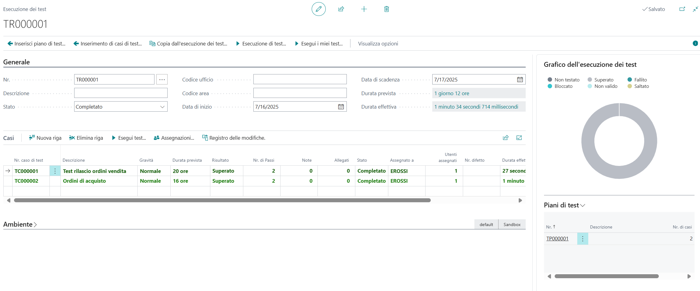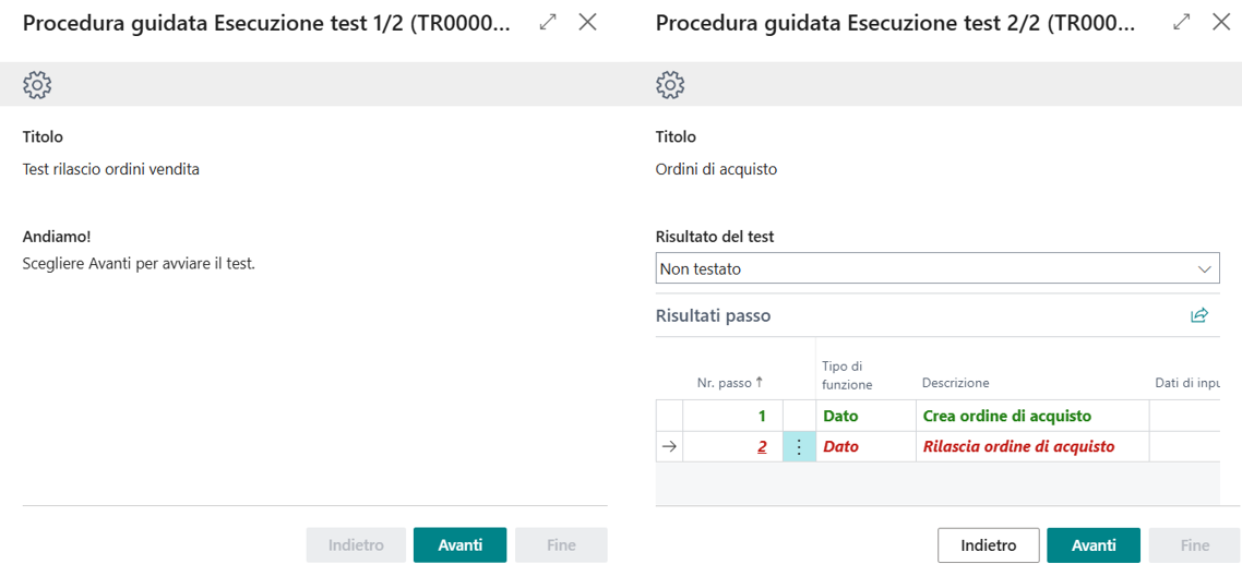 - Seguire la guida passo-passo definita nel caso di test per l’esecuzione con l’aiuto di un wizard.