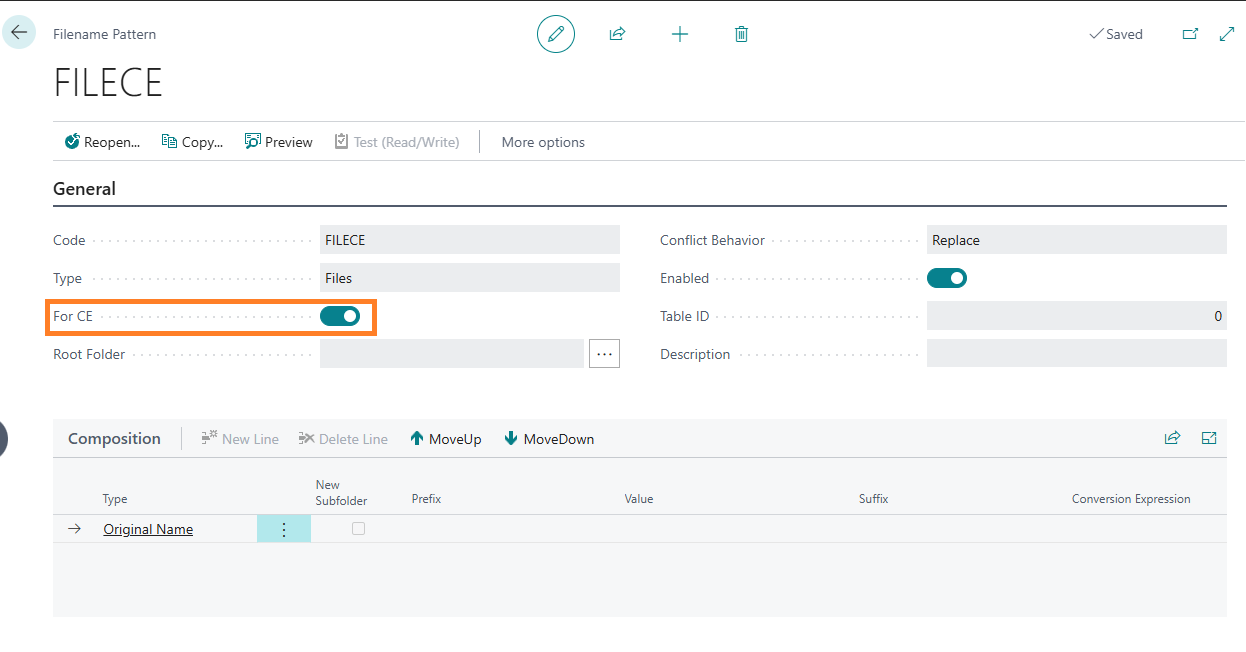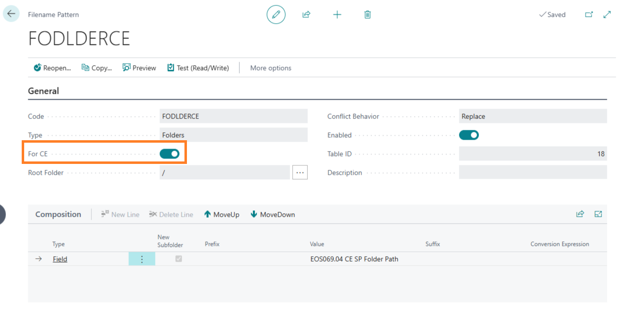 - Folder Pattern: abilitare il flag che premette il prefisso obbligatorio “CE Folder Path” (inserito automaticamente) e completare l’eventuale struttura restante.
