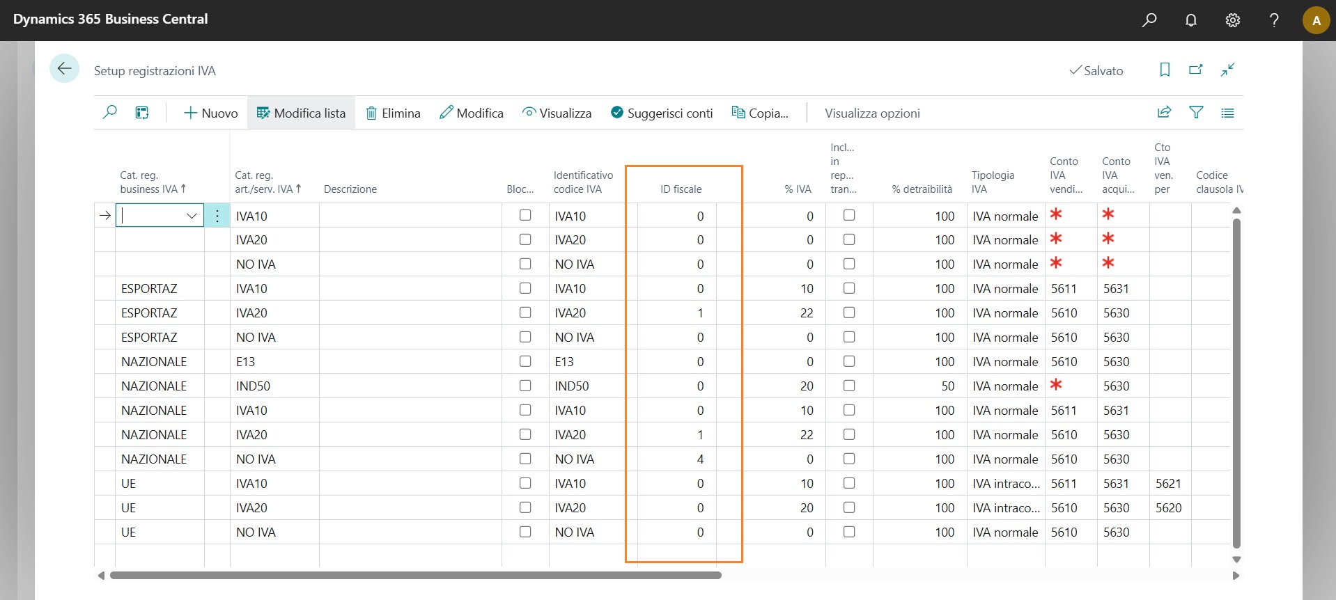 Ai fini dell’emissione di uno scontrino di vendita, reso o annullamento, è necessario definire una mappatura tra il setup registrazioni IVA in LS Express e i reparti fiscali configurati nel setup del registratore telematico Epson. La configurazione è unica per tutto il sistema e non dipende né dal negozio né dal terminale POS; di conseguenza, è obbligatorio configurare tutti i registratori fiscali con gli stessi reparti IVA. Nel setup della “Setup registrazioni IVA” è stato aggiunto il campo obbligatorio “ID fiscale”. Questo campo deve contenere il numero del reparto IVA corrispondente al codice e alla percentuale IVA configurati in LS Express.