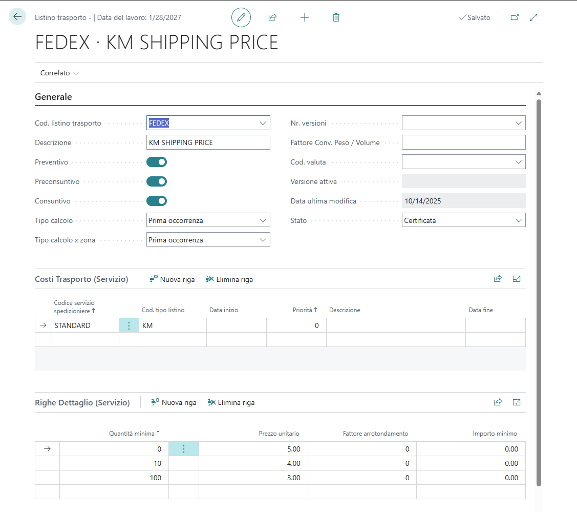 Il listino FEDEX (basato sui km) è un esempio dove ci sono i servizi.